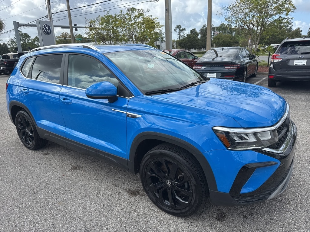 CARFAX One-Owner. Clean CARFAX. Certified. Cornflower Blue 2022 Volkswagen Taos 1.5T SE AWD 7-Speed DSG Automatic with Tiptronic 1.5L I4 Turbocharged DOHC 16V LEV3-SULEV30 158hp